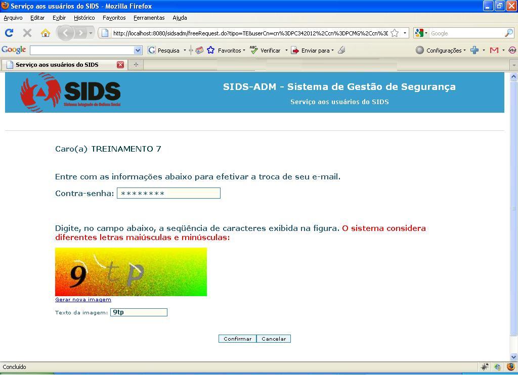 Passo 8 - Digite sua contra-senha e a sequĂȘncia de caracteres exibida na figura. Clique em 'Confirmar'.